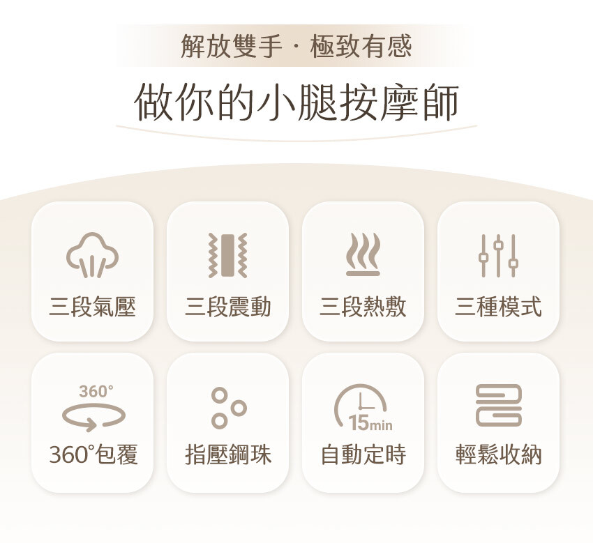 .3D 氣囊設計,三段氣壓仿真按摩體驗