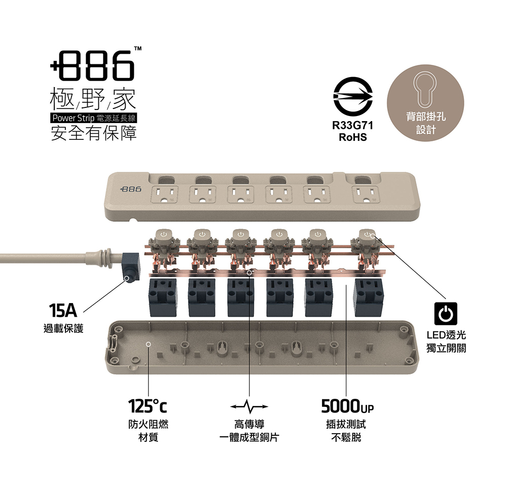 •安全保護、提供15A過載保護,防火阻燃材質