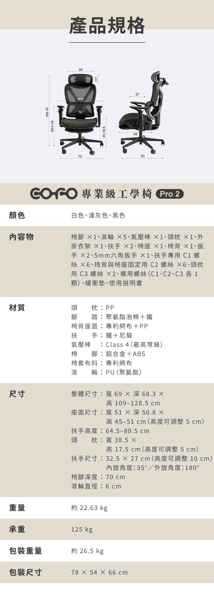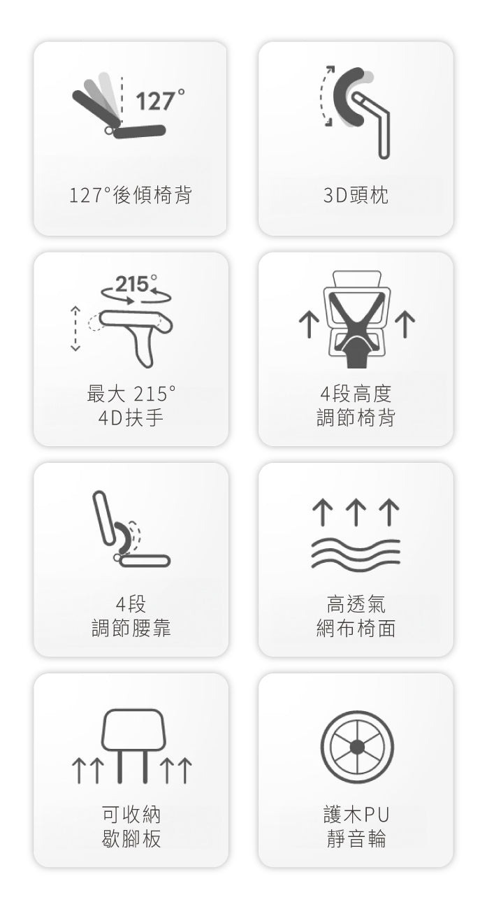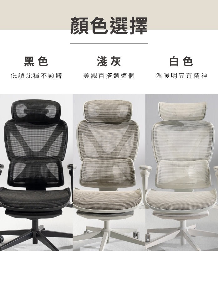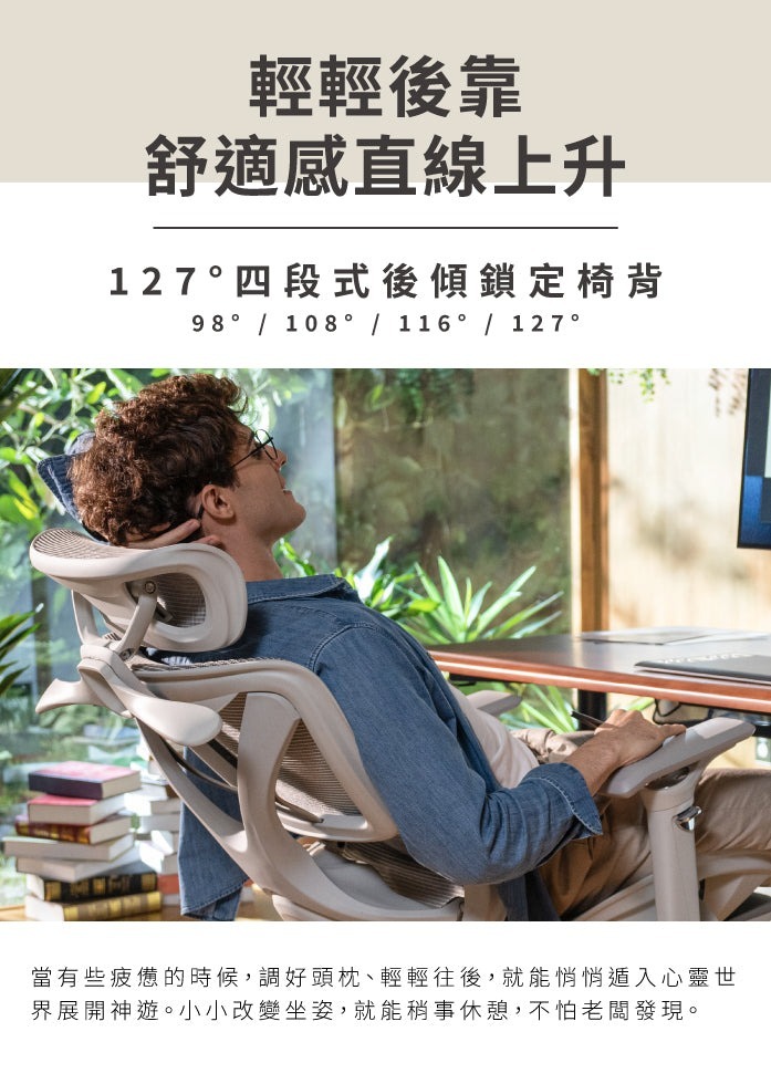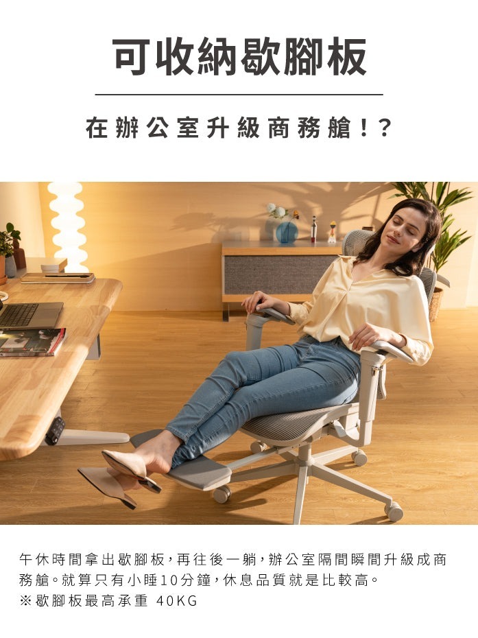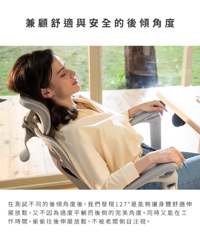 • 獨家3D頭枕,上下左右高度皆可調,貼合頸部曲線