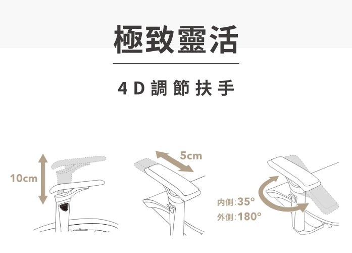 • 4D旋轉扶手,撐起不同狀態的雙手