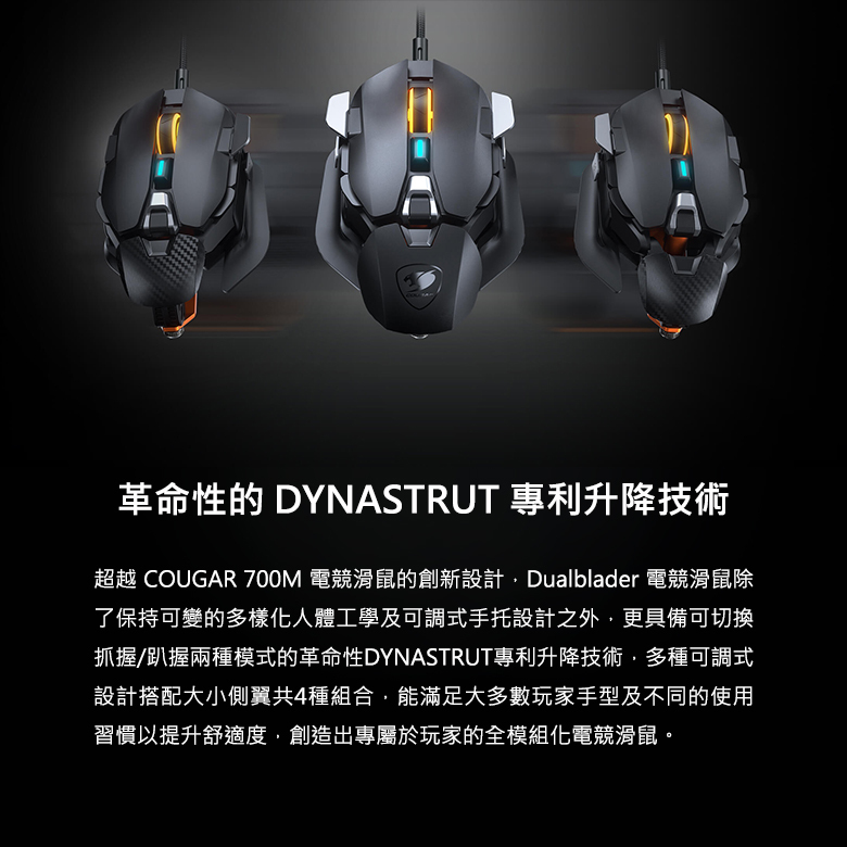 • 保持可變的多樣化人體工學及可調式手托設計