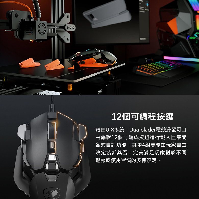• 可自由編輯12個可編成按鈕進行載入巨集或各式自訂功能