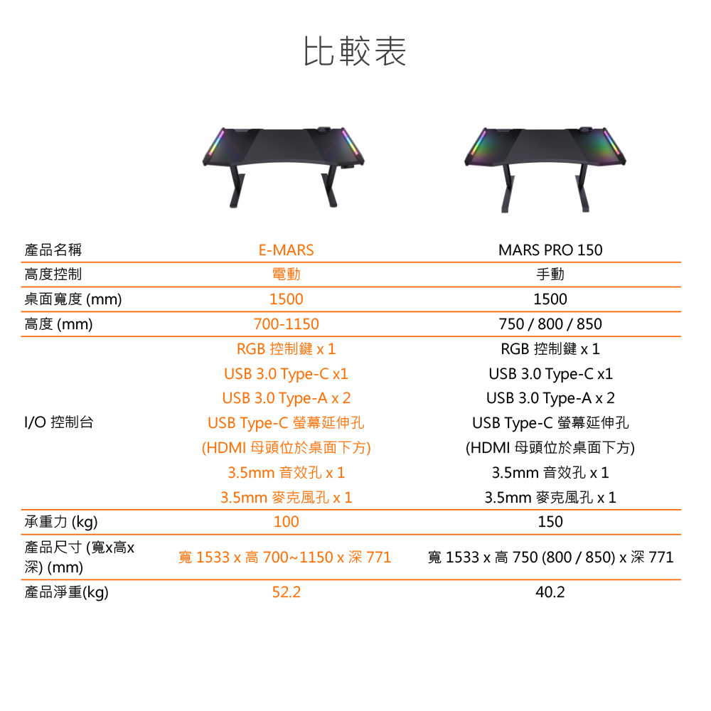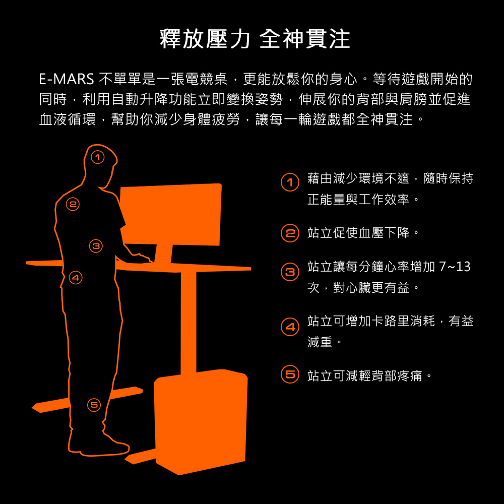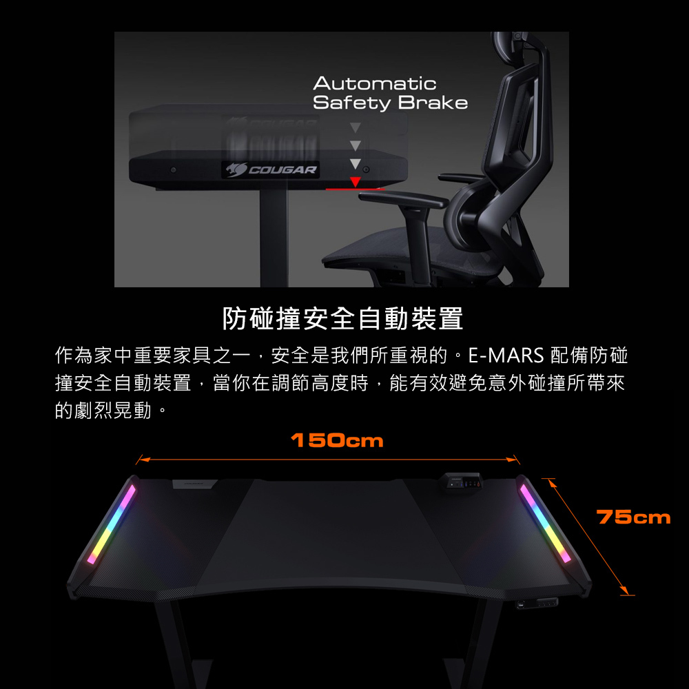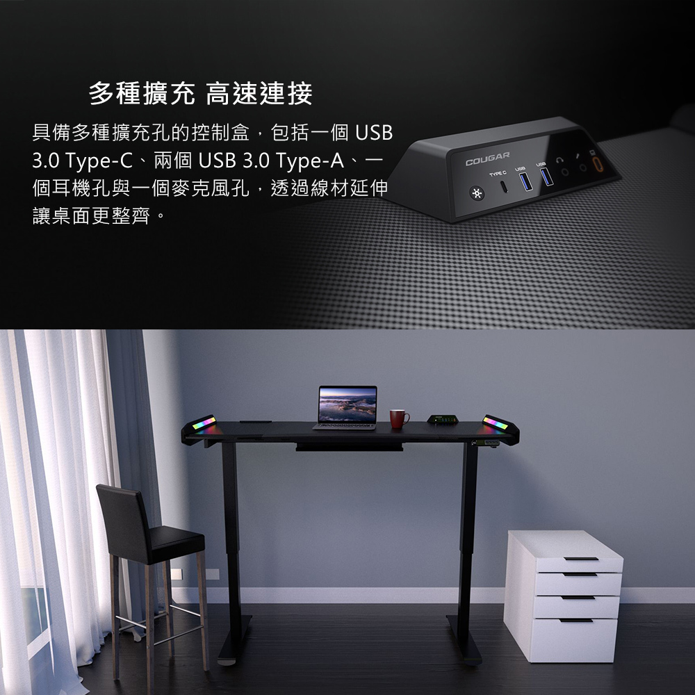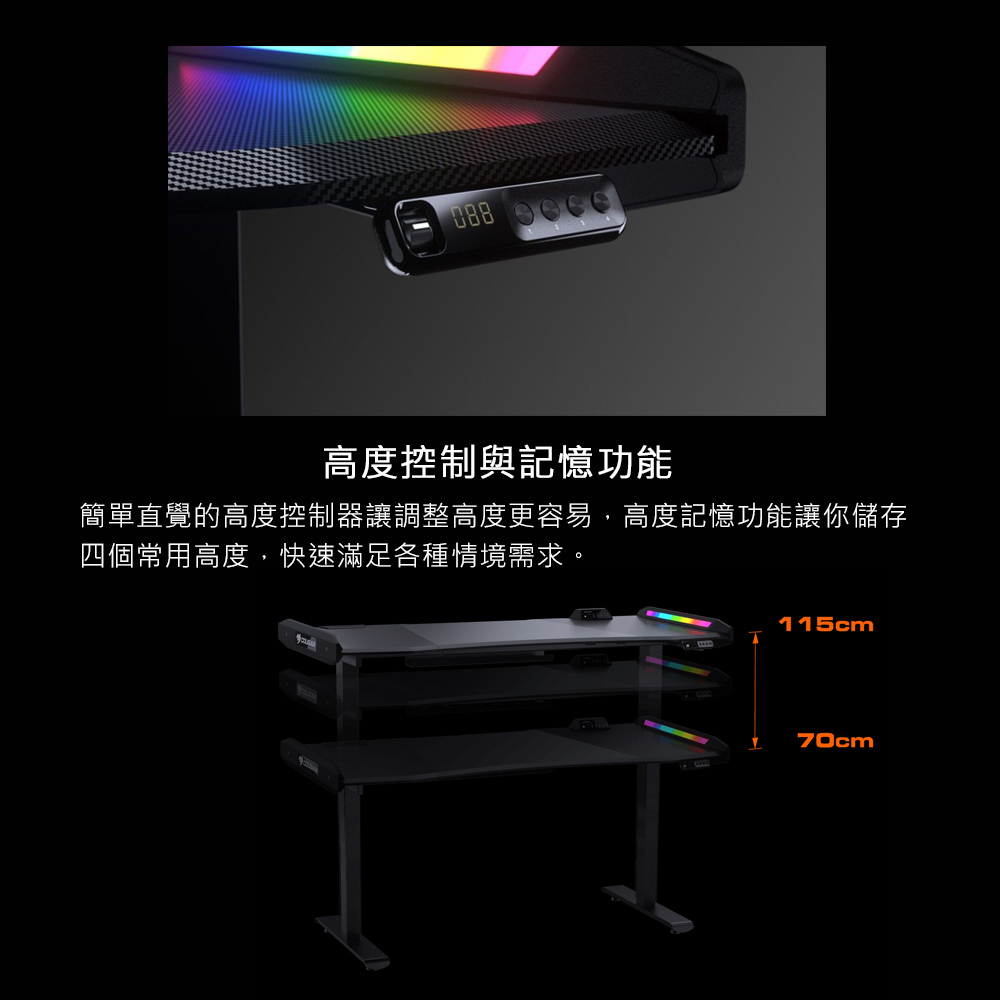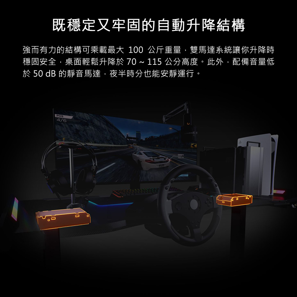 • 雙馬達系統,升降高度 70 ~ 115 公分