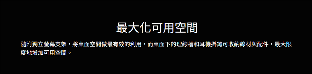 • 隨附理線槽和耳機掛架有助於保持桌面整潔
