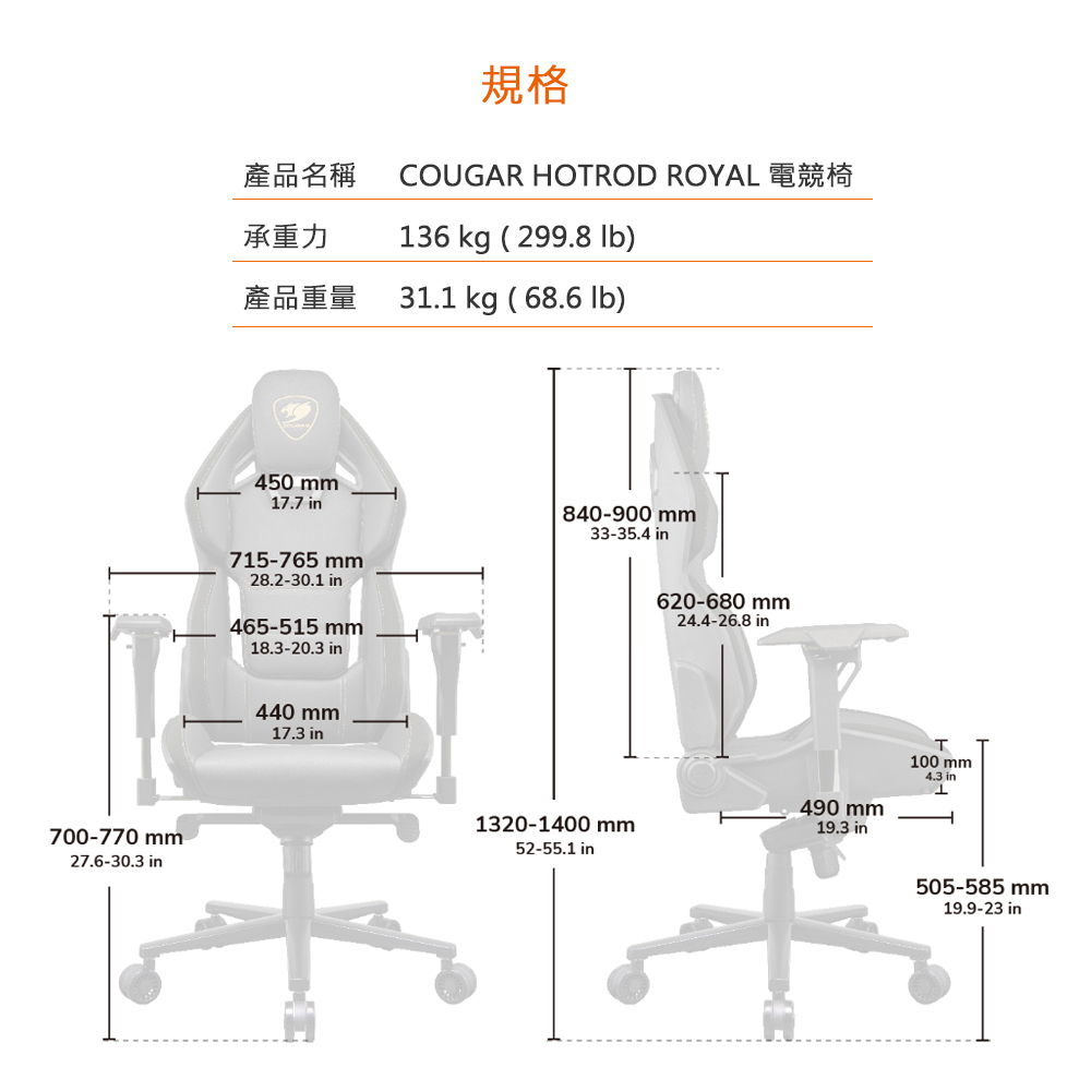 • 極佳的包覆性、支撐性坐感