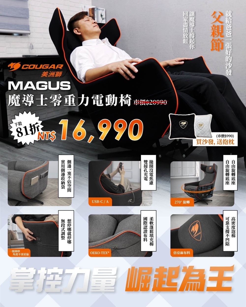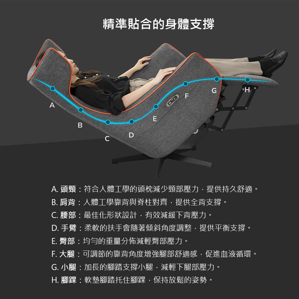 ・全電動傾仰調節,零重力姿勢釋放全身壓力