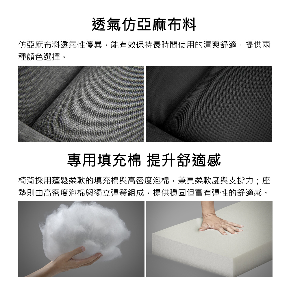 ・透氣仿亞麻布料,親膚舒適、久坐不悶熱