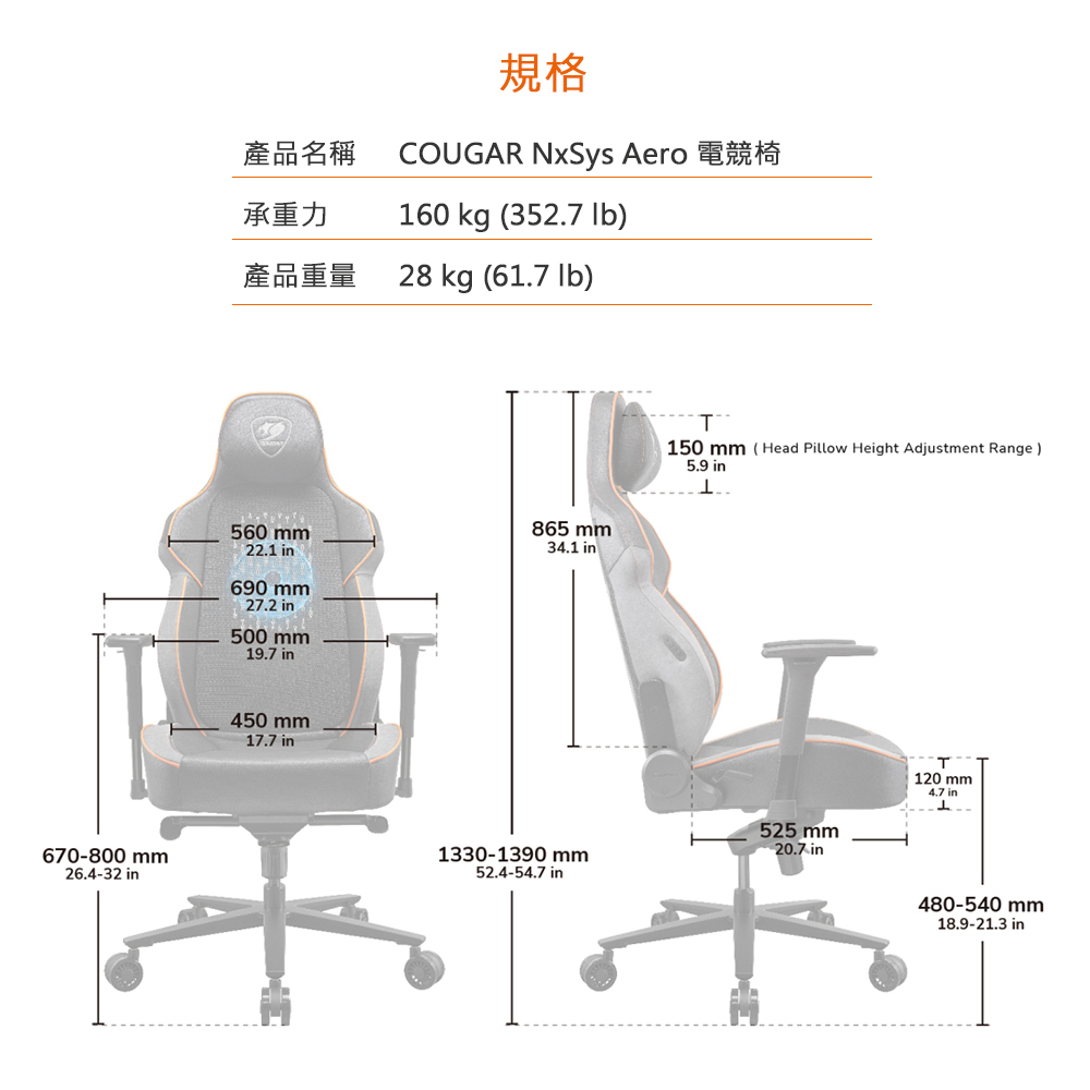 • 舒適高彈力透氣網布椅背