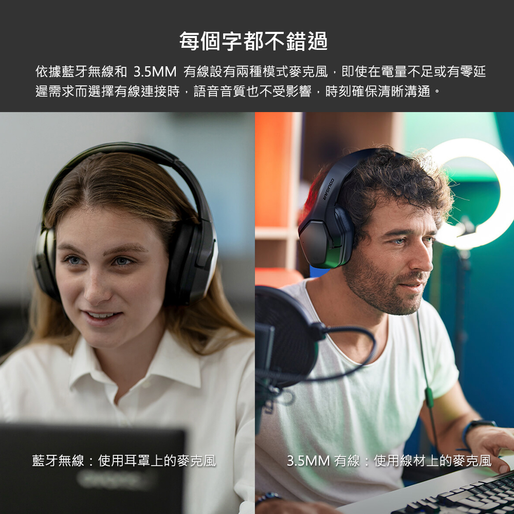 • 藍牙無線和 3.5mm 有線 兩種模式,時刻確保清晰溝通