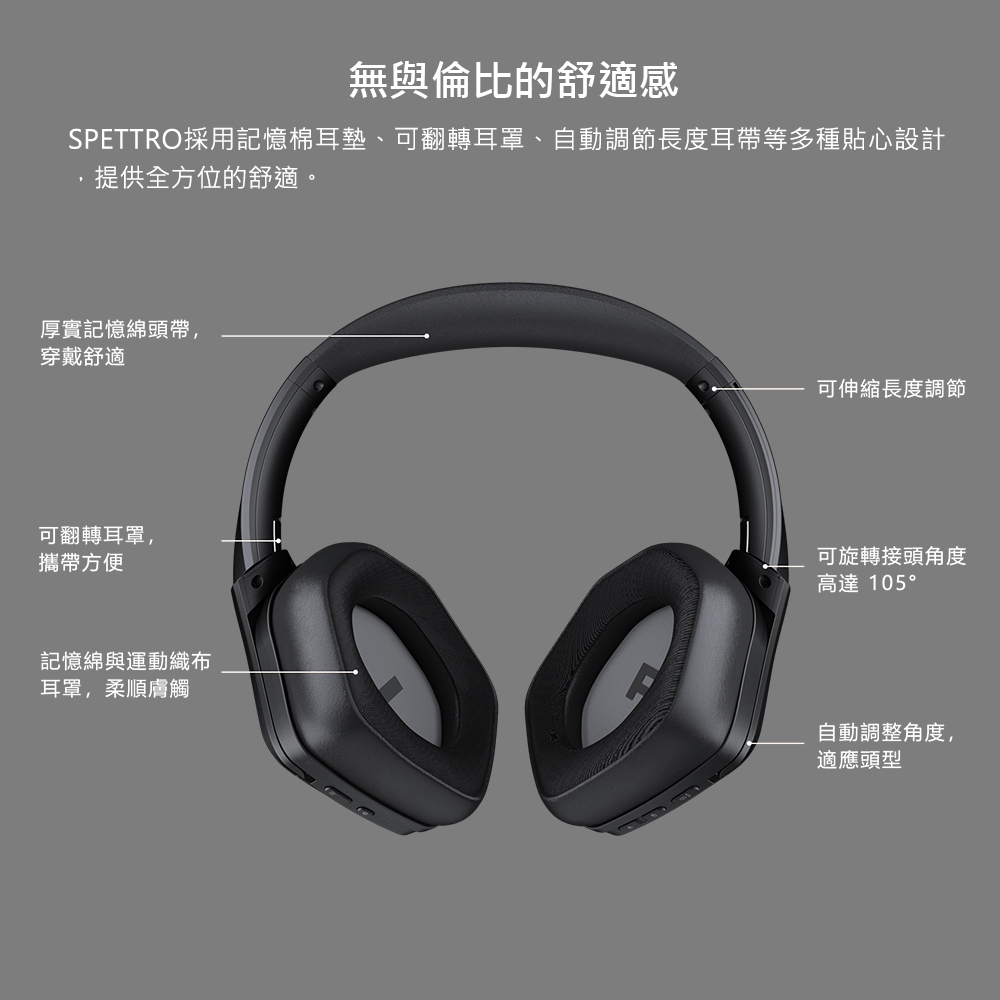 • 採用記憶棉耳墊、可翻轉耳罩、自動調節長度耳帶