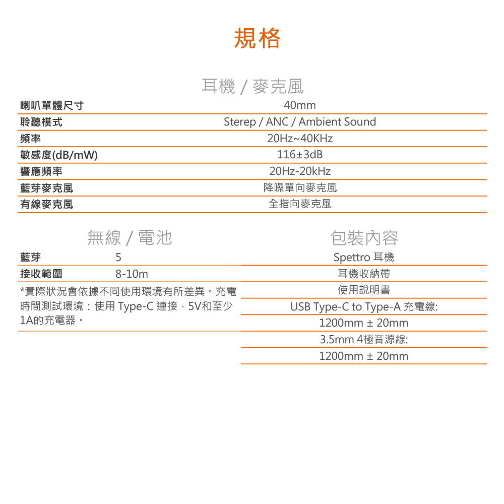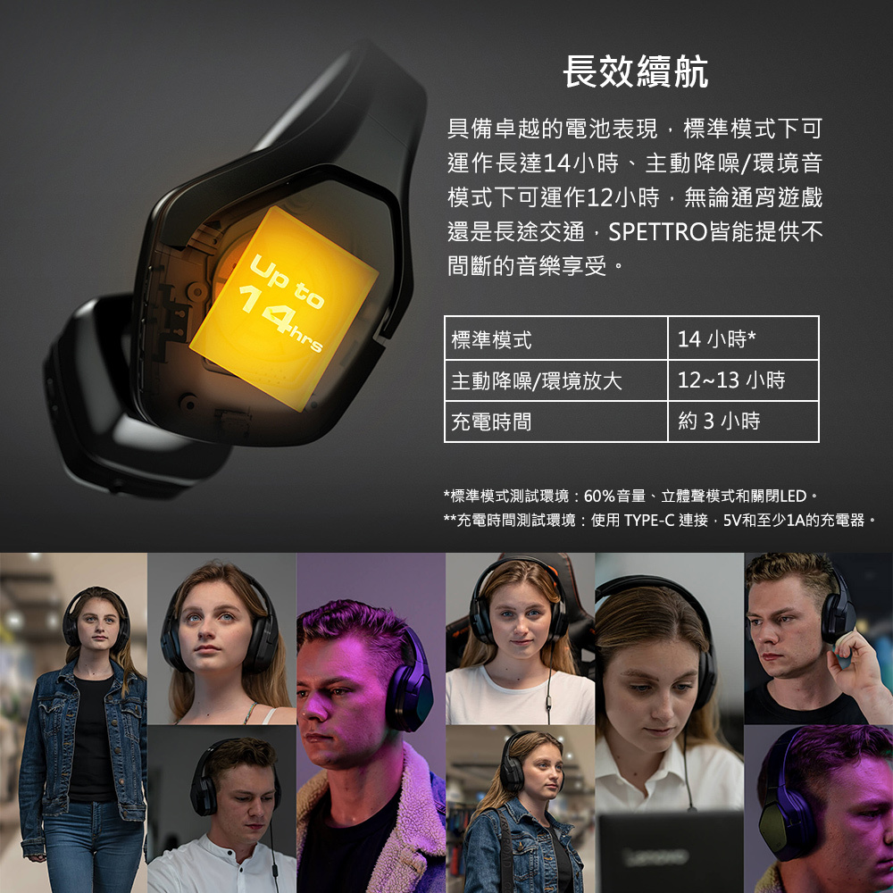 • 長效續航,主動降噪/環境音模式下可運作12小時