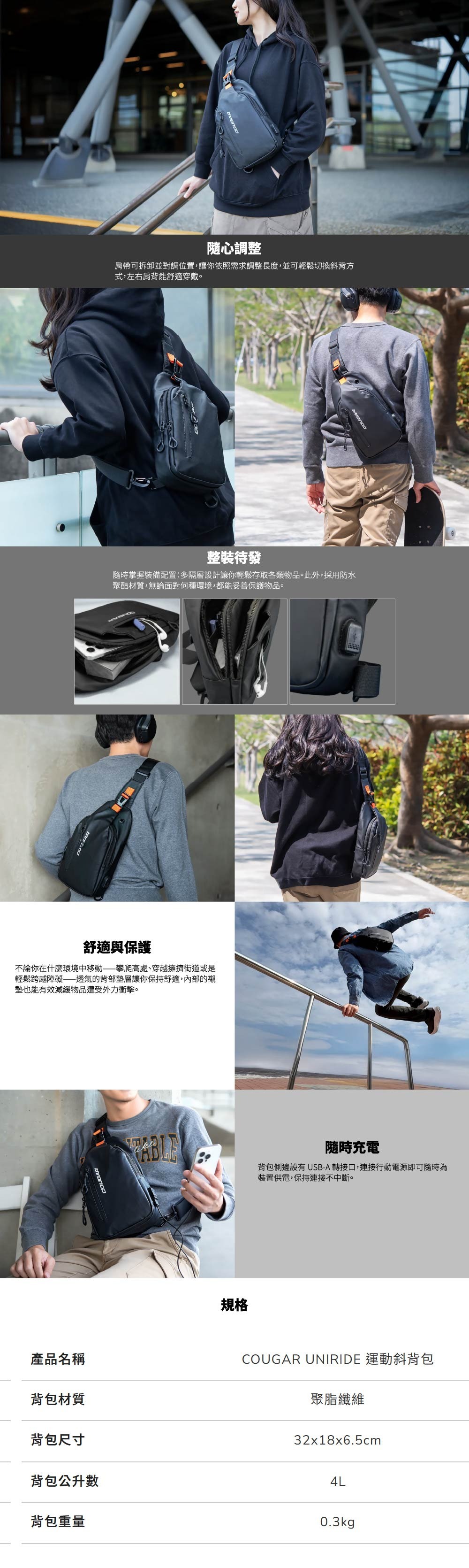 .肩帶可拆卸並對調位置,依照左右背需求調整使用