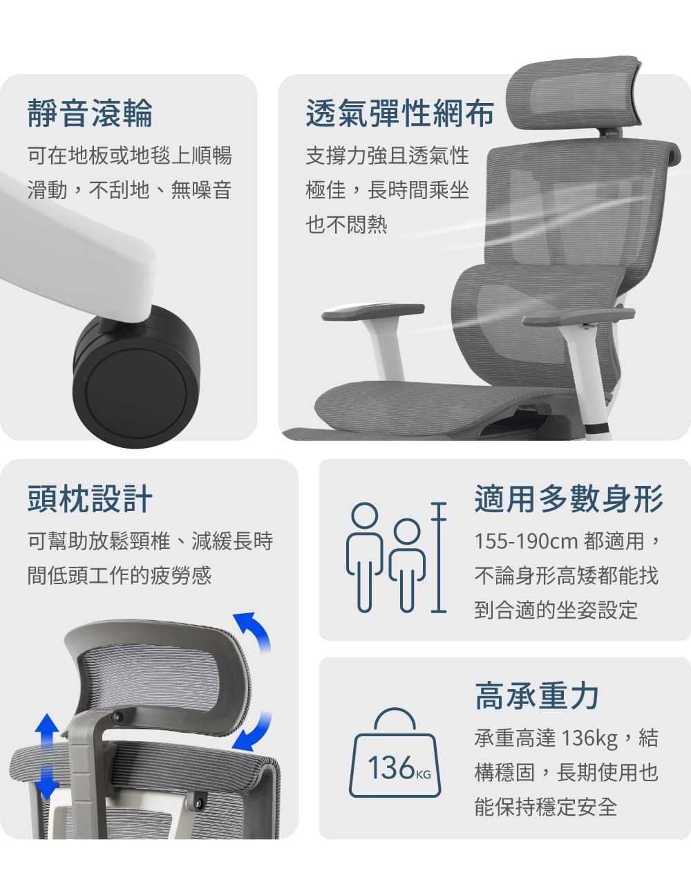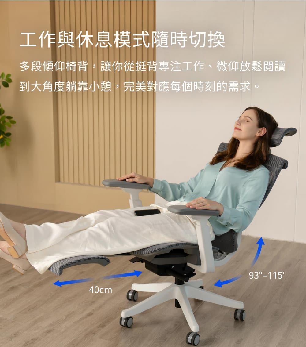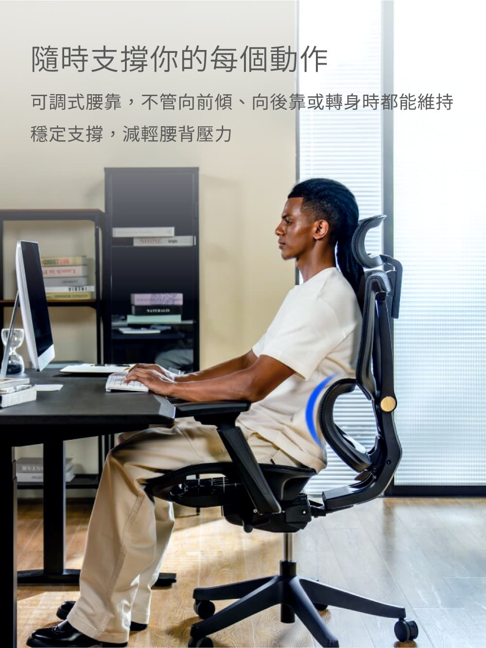 • 獨立腰背支撐結構,輕鬆維持自然姿勢