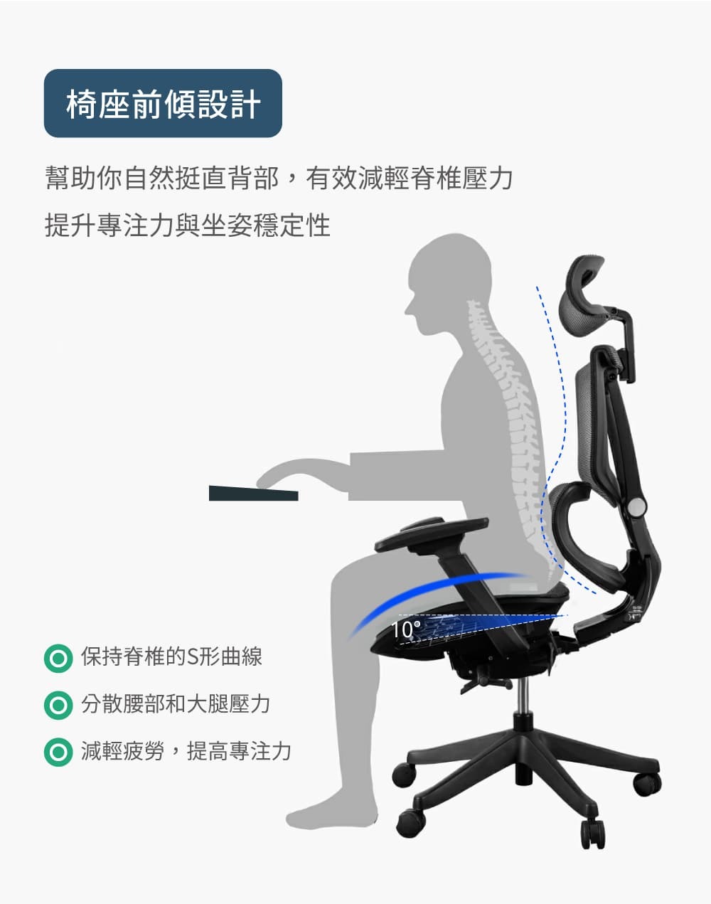 • 座椅傾斜設計,有效減輕脊椎壓力