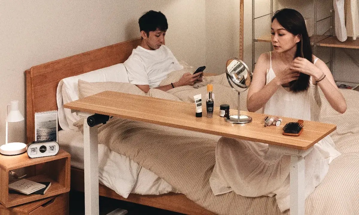 ▲ 也可以拉到床邊當懶人桌,保養、化妝都 OK