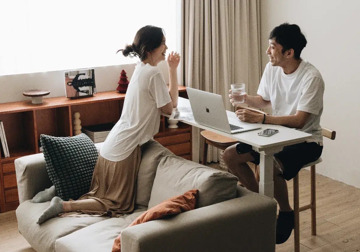 今晚,你來客廳這邊工作,陪我聊聊天嘛~