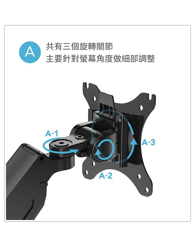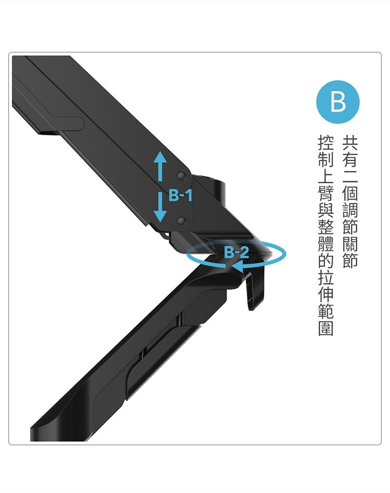 • 三個關節,拉伸、旋轉自由度高