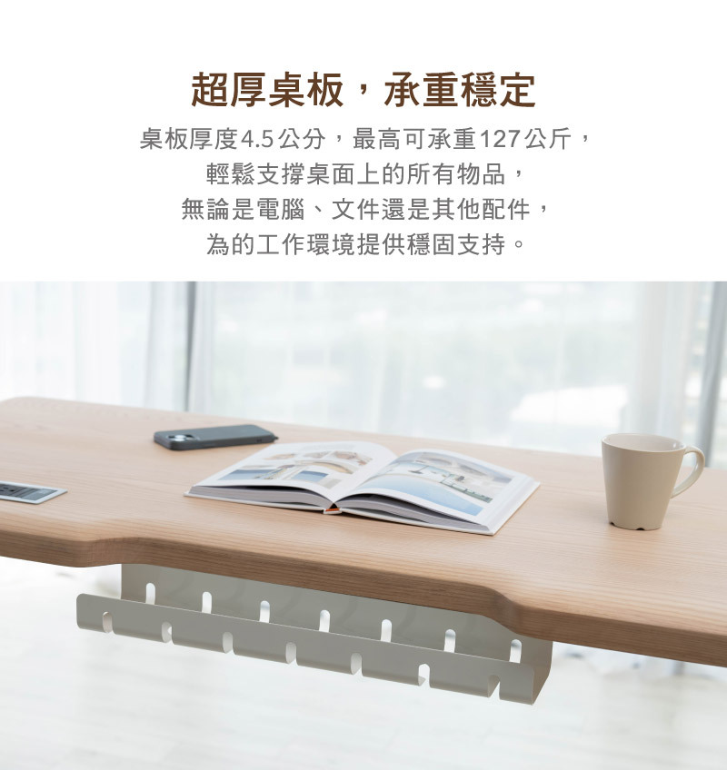 • 超厚桌板|4.5公分厚度,最高可承重127公斤