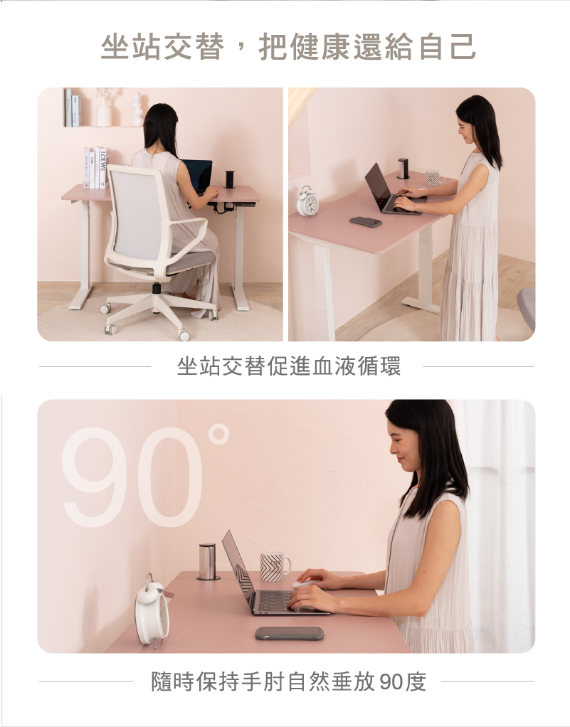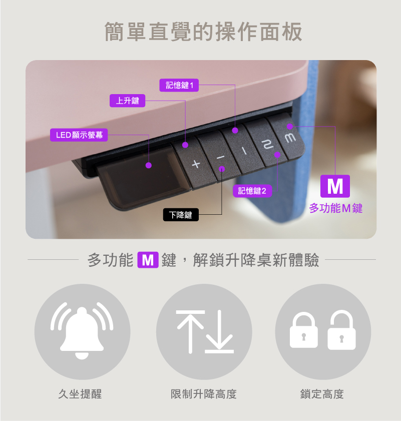 • 琴鍵式手控器 | 直覺操作,久坐提醒、鎖定高度