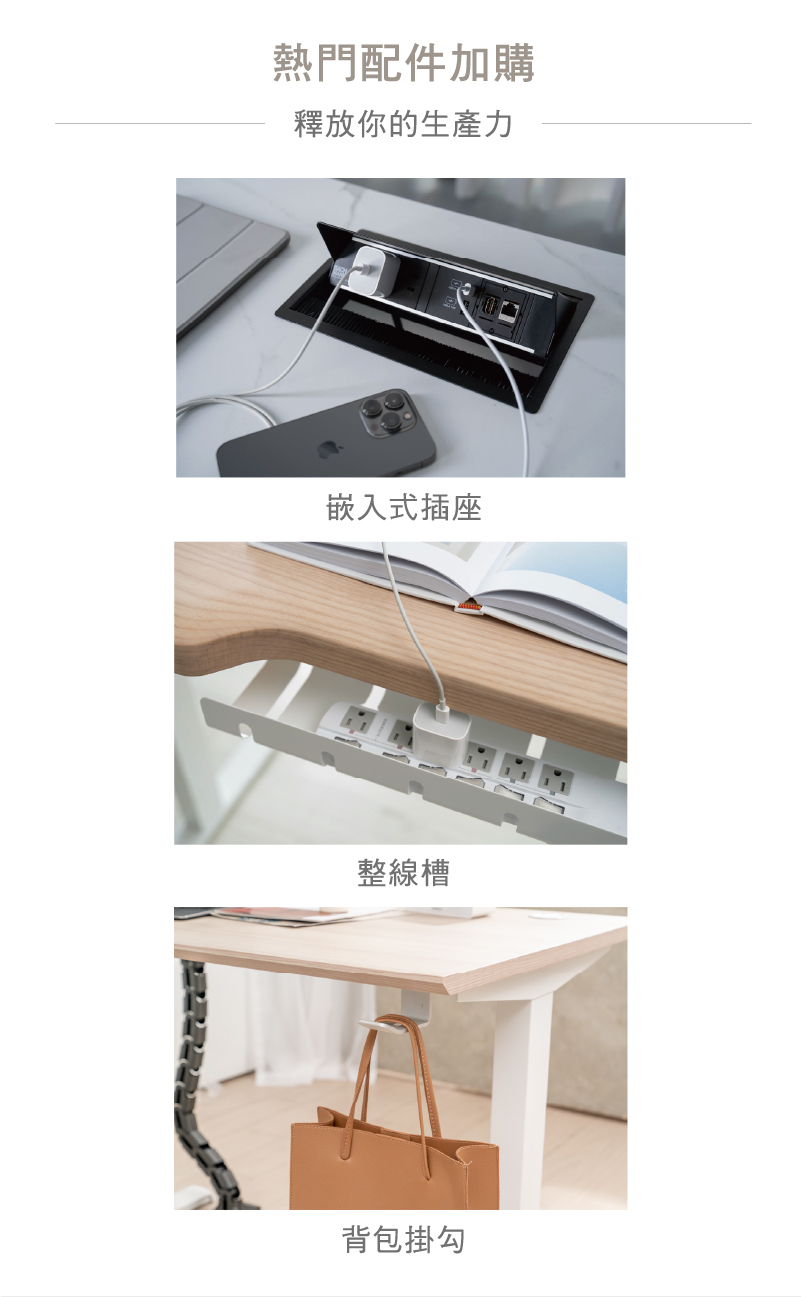 • 桌面電源款式:BACHMANN 小電梯 Elevator 伸縮插座(美插x1 + USB C 30W x 1 (支援無線充電))