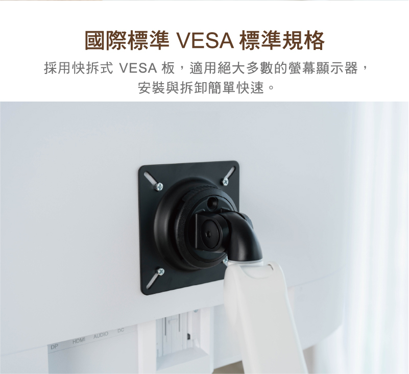 • 可水平調整,確保螢幕靠攏