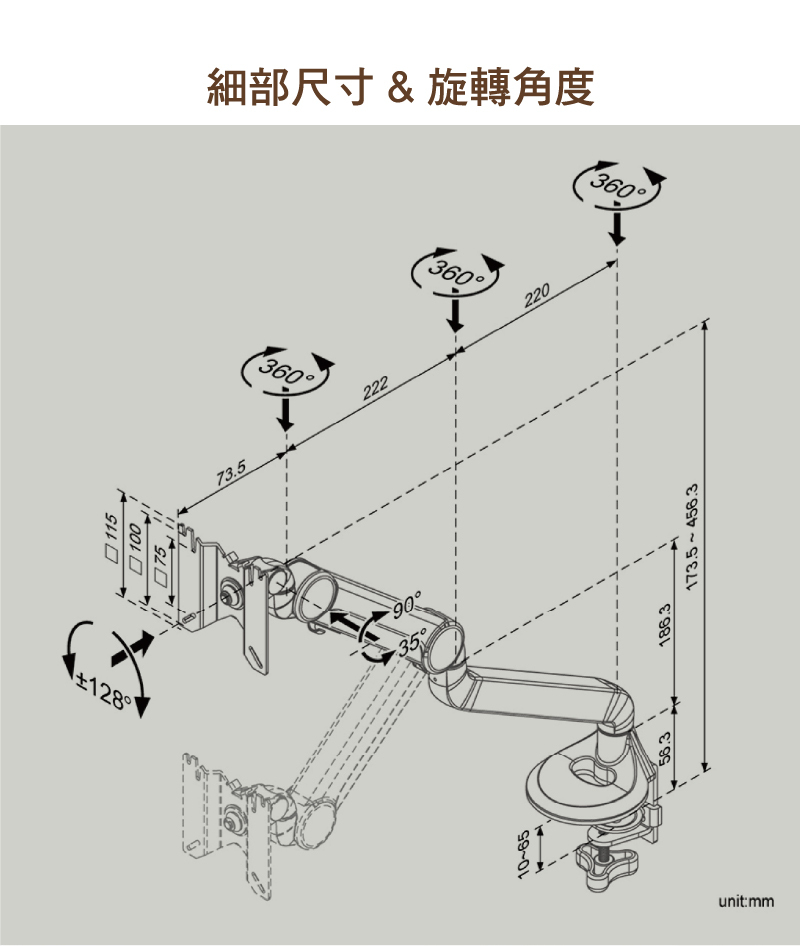 • 旋轉 ±128°