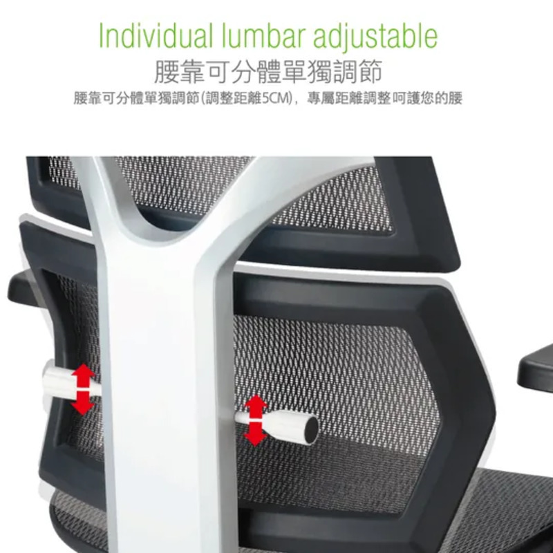 ・獨立可調式腰靠,有效貼合背部曲線