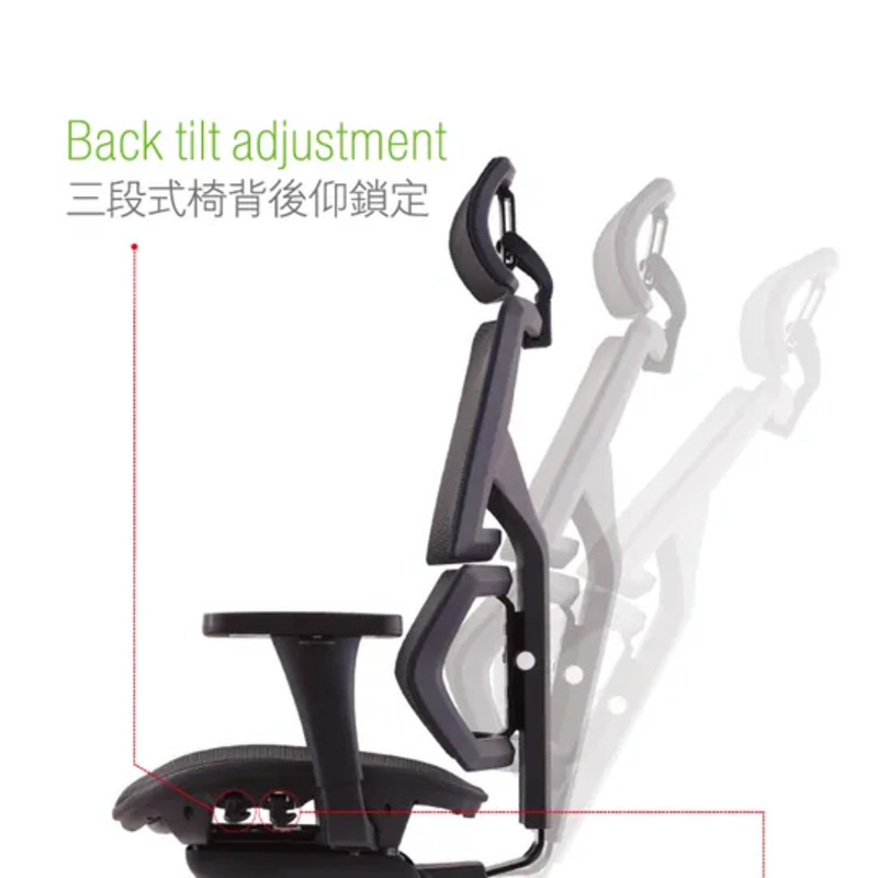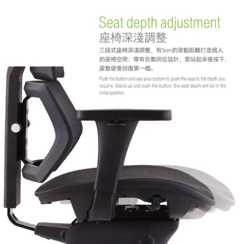 ・椅背後仰與座椅深度皆可三段式調整,坐感自由彈性