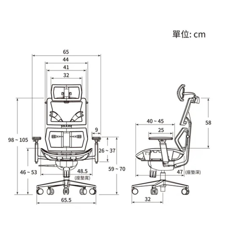 ・白色透氣網布椅背,支撐脊椎、長坐不悶熱