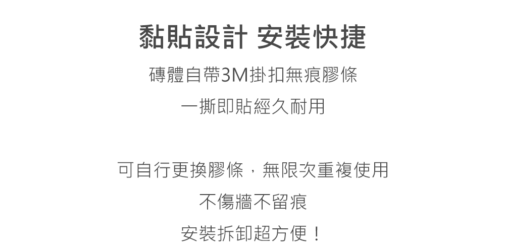 • 安裝快速,不傷牆面不留痕