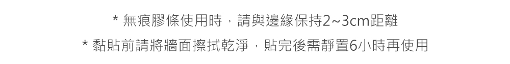 (3) 上牆安裝請先靜置6小時,待膠條黏貼穩固後,再行對位或換位使用