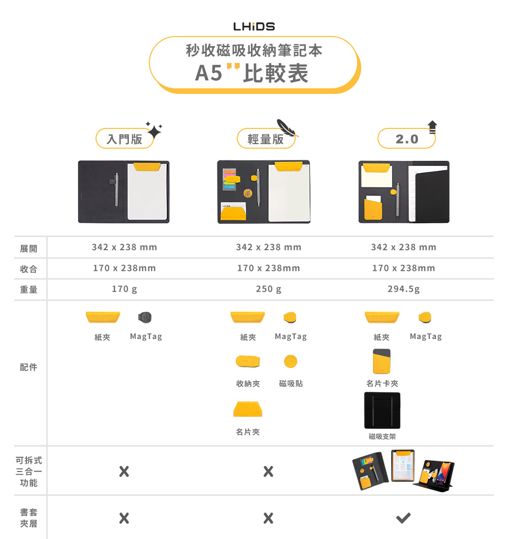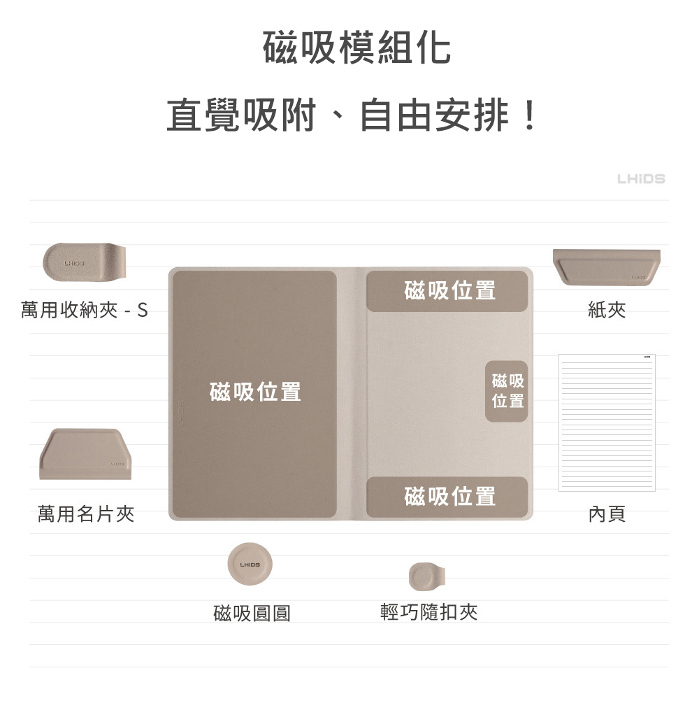 • 根據不同情況用磁吸模組收納各種物品,創造專屬於您的LHiDS磁吸收納筆記本