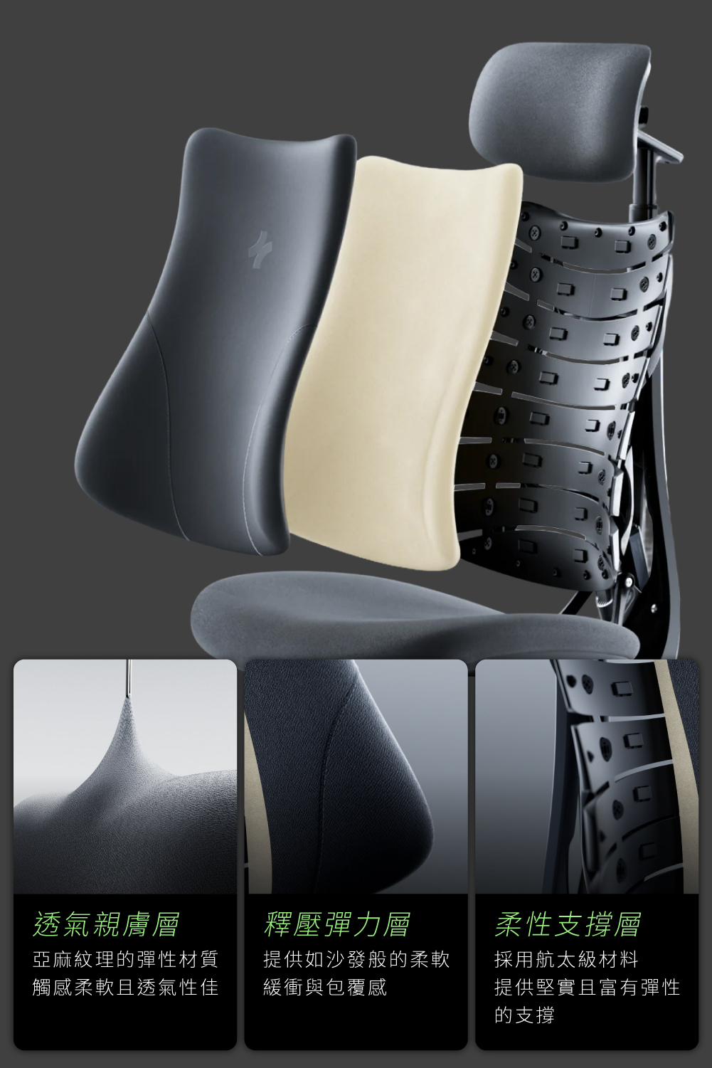 • FlexFit 仿生外骨骼 柔性椅背|客製化般舒適貼合