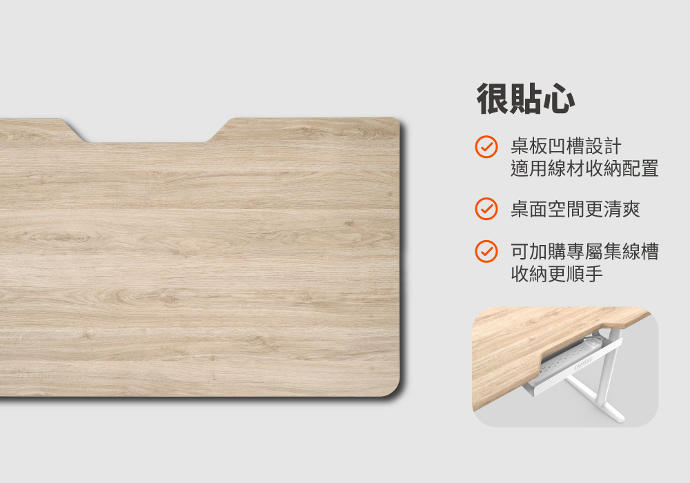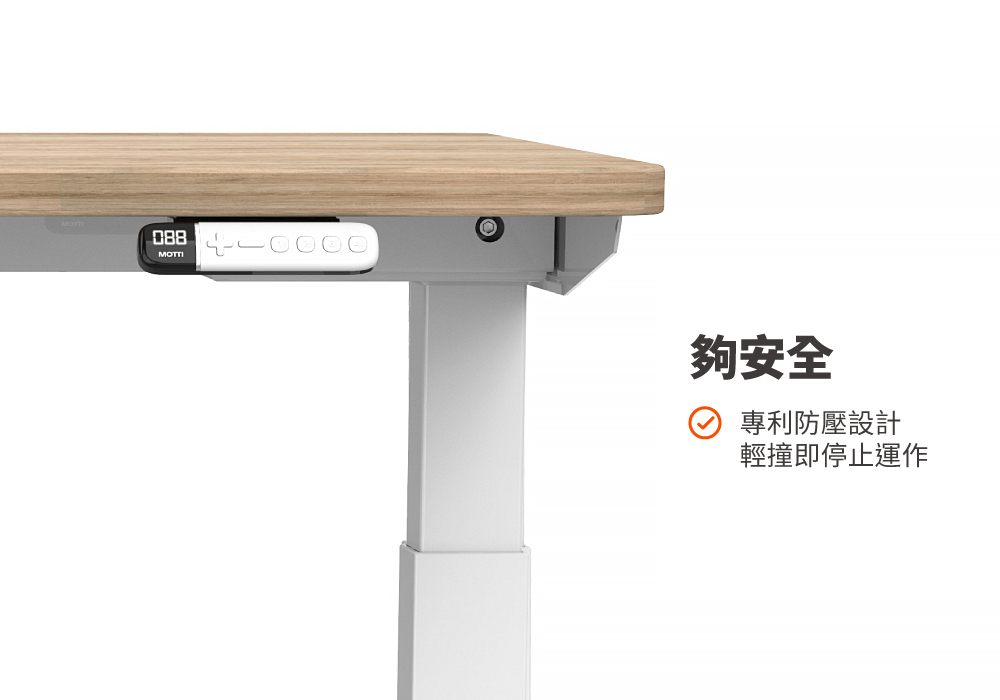 • 桌面安全防壓設計,在升降過程遇到障礙物時,桌面會回彈並停止運作