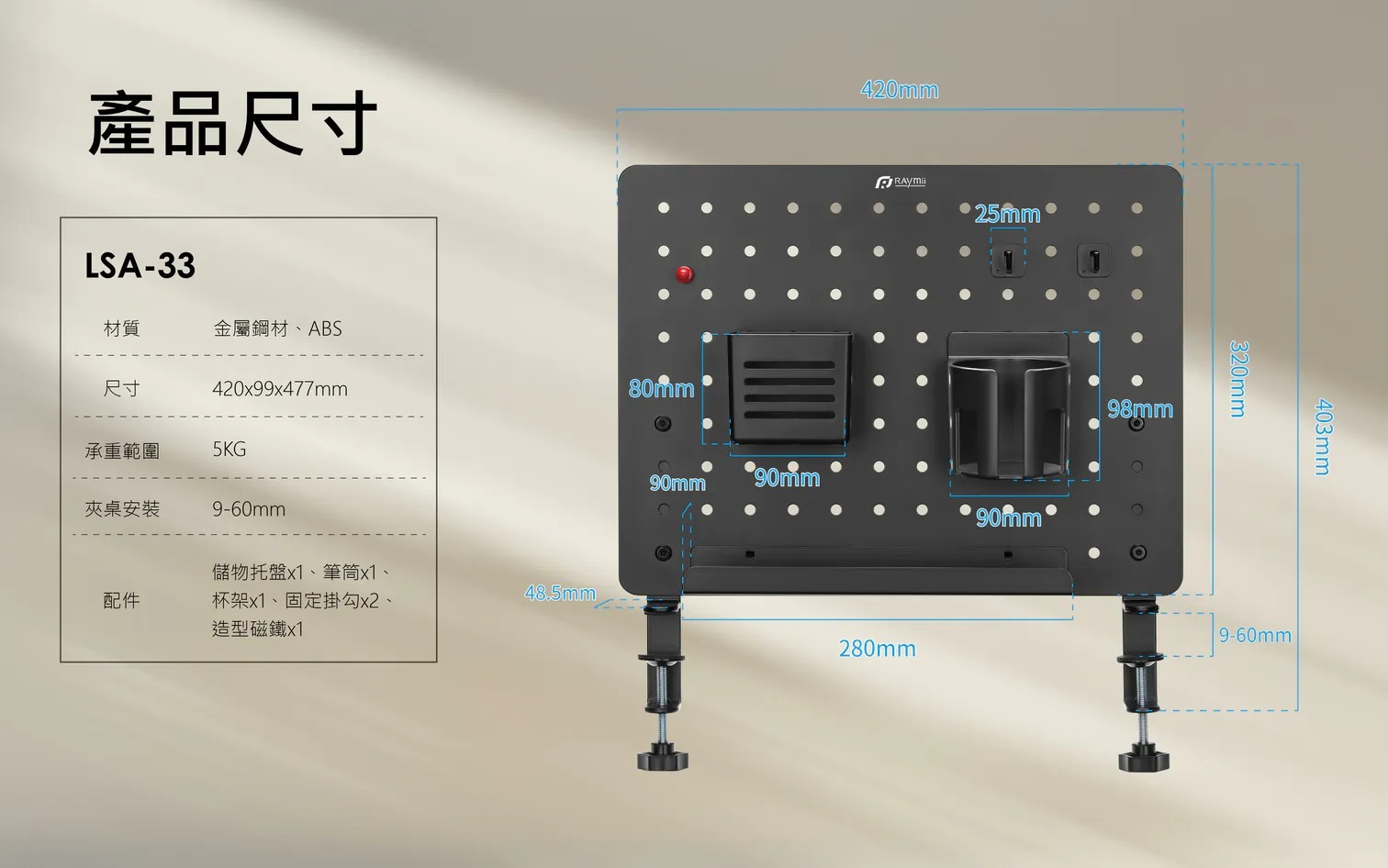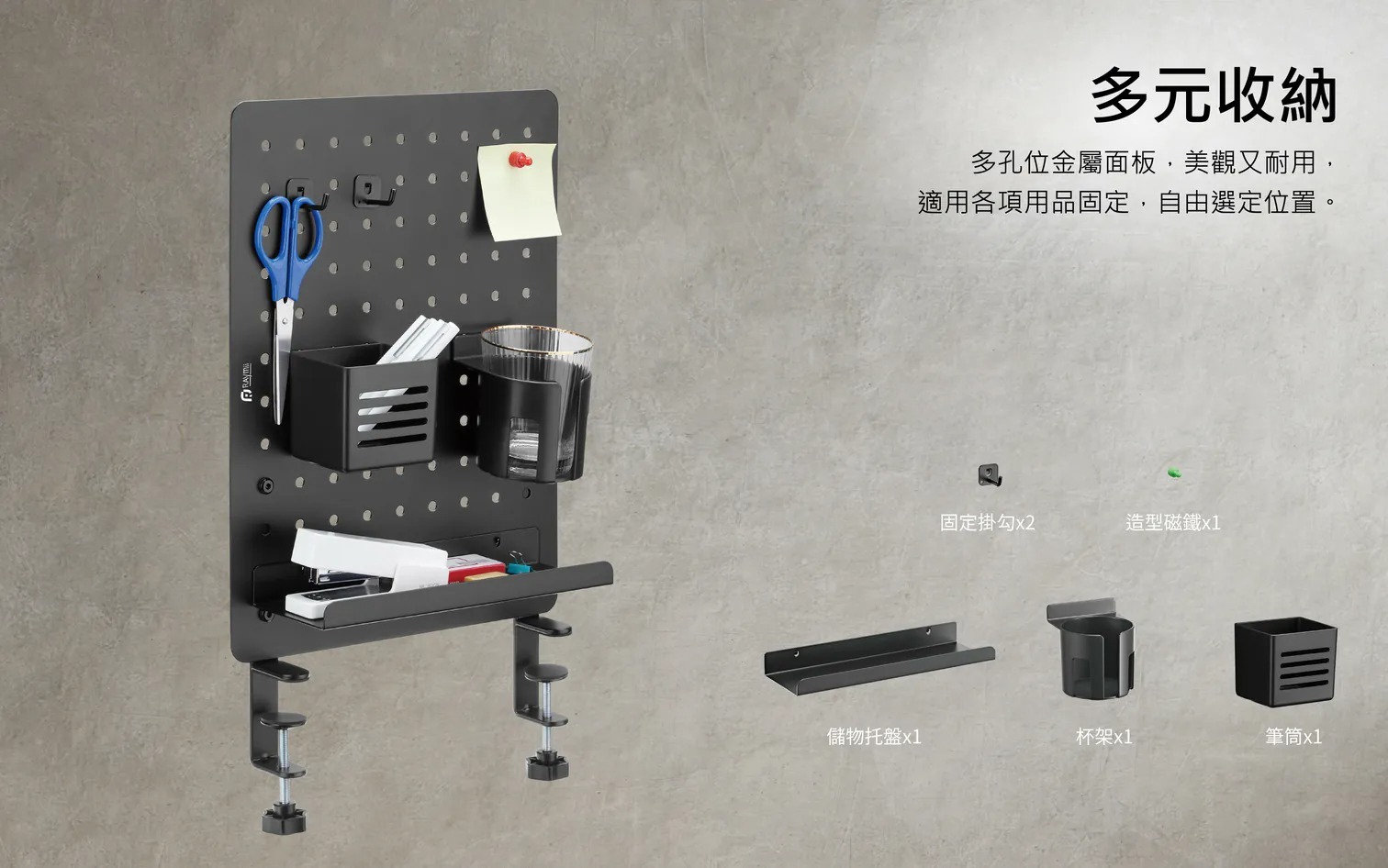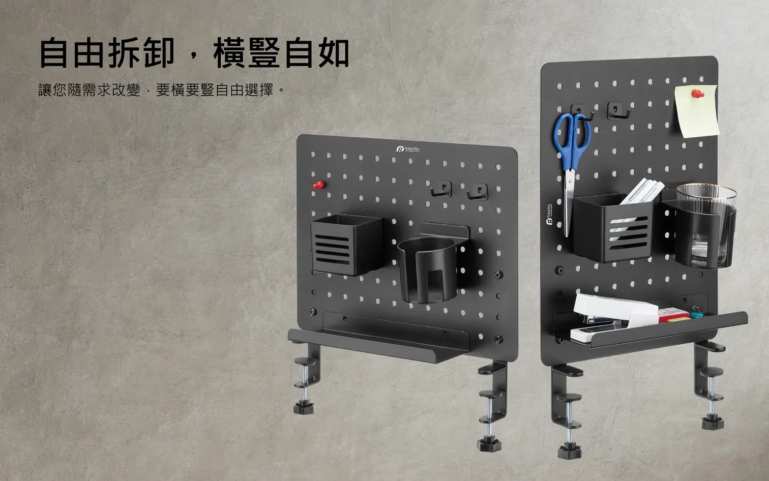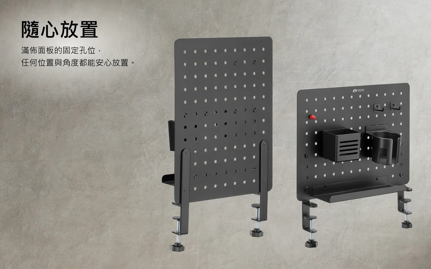 • 帶有橢圓釘孔和防水表面允許使用者自行DIY規劃布置