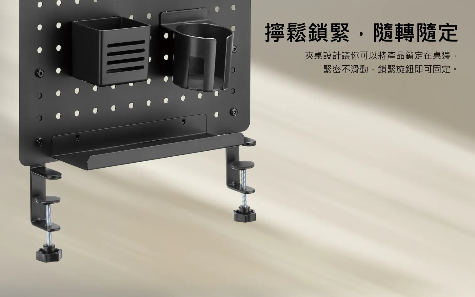 • 節省空間的夾式底座設計,加大了安裝的自由與彈性