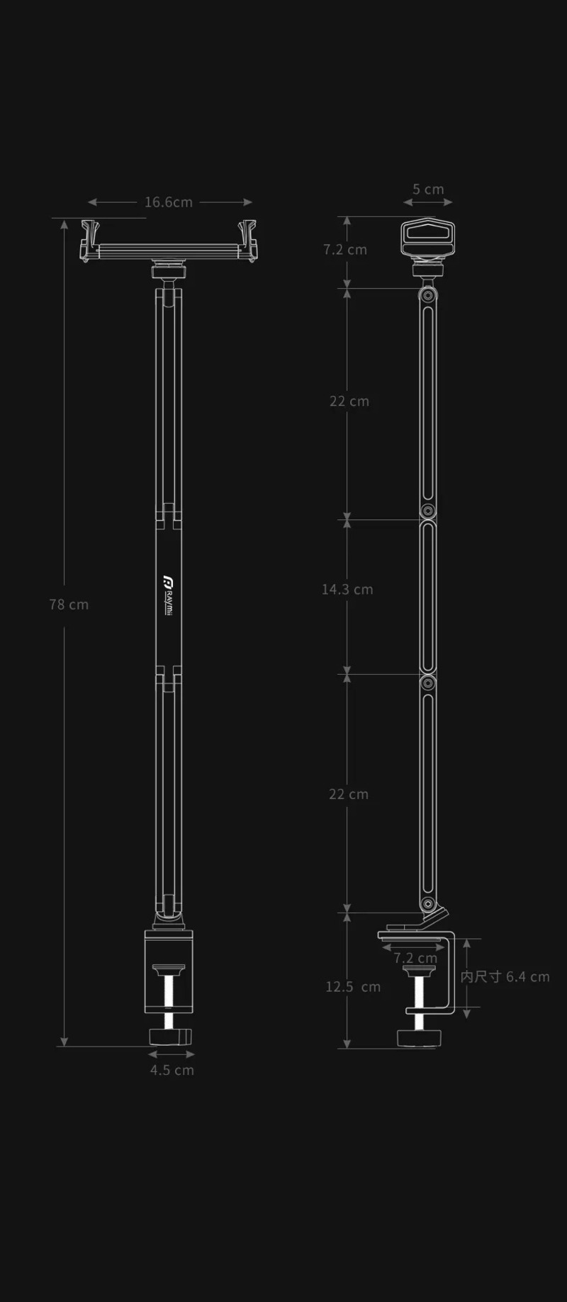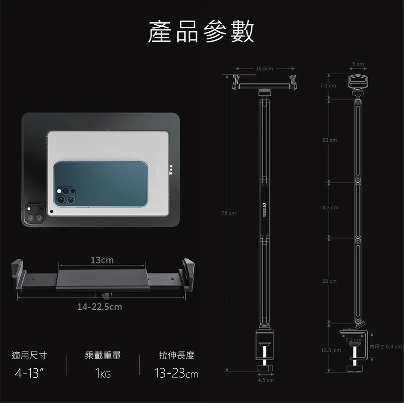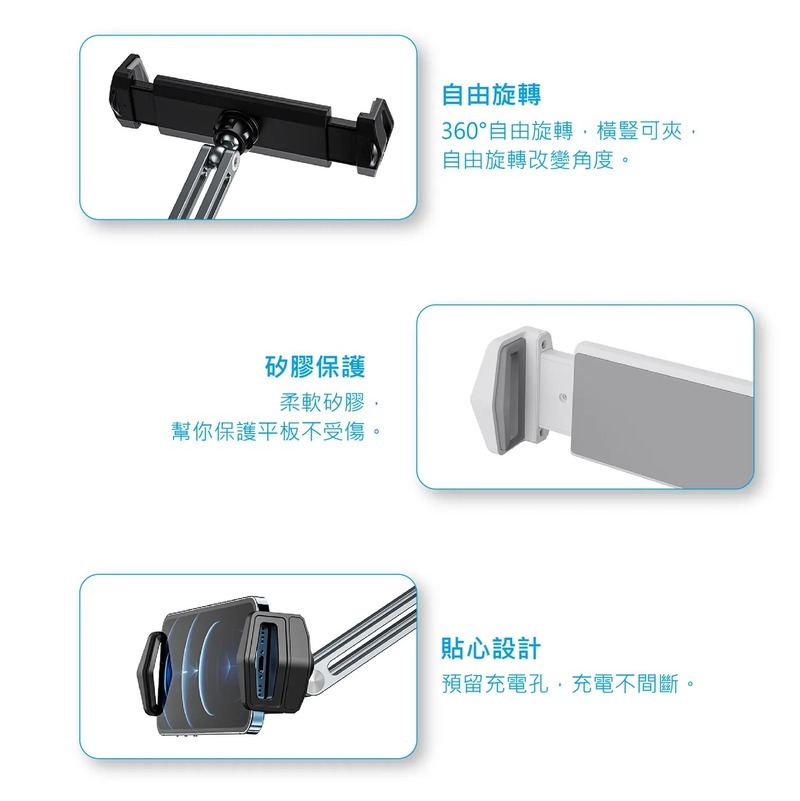 • 通用夾可支援4.7吋至13吋之行動裝置